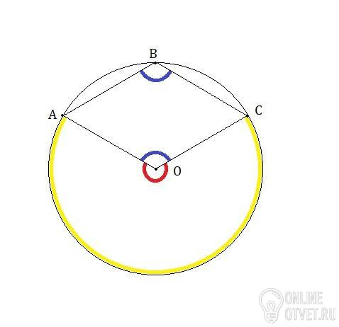 Поскольку ABCO – ромб, то угол AOC (синий) равен углу ABC.
