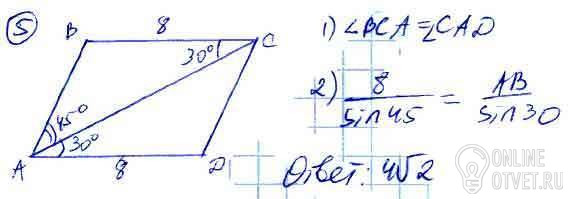 Больший угол параллелограмма = 135° , а угол, что образует диагональ с меньшей стороной = 30°. Найдите диагональ параллелограмма, если его большая сторона = 4√2 см.