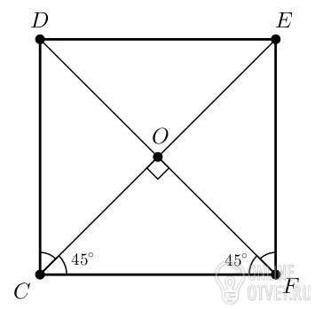 Диагонали квадрата CDEF пересекаются в точке О. Чему равен угол COF?