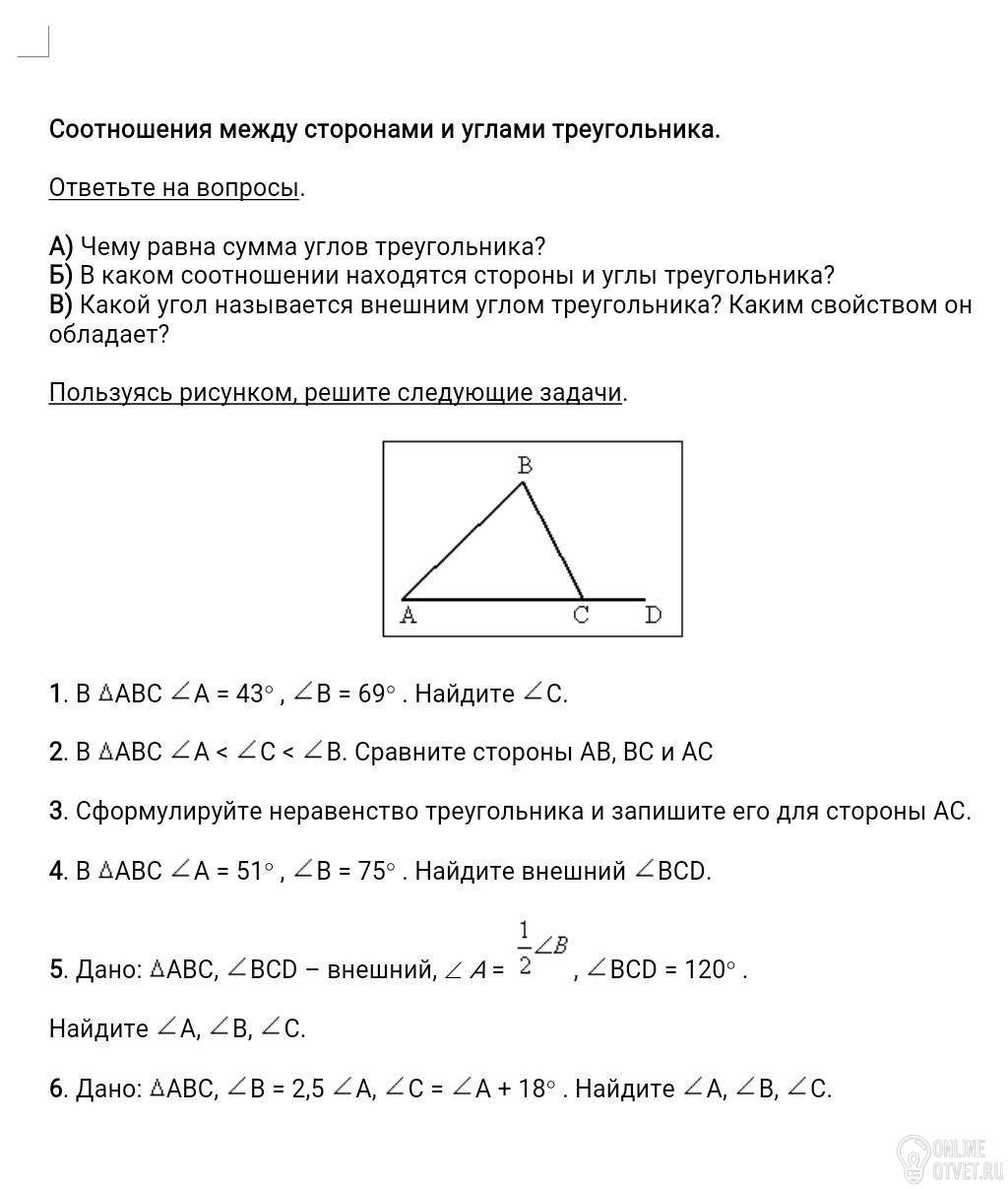 Б)в треугольнике напротив большего угла лежит большая сторона, напротив большей стороны больший угол