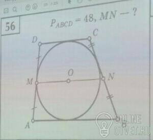 MN= (AB+CD)/2 = P(ABCD)/4 =48/4 =12