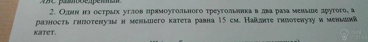 Ответ: гипотенуза равна 30 см, меньший катет — 15 см..