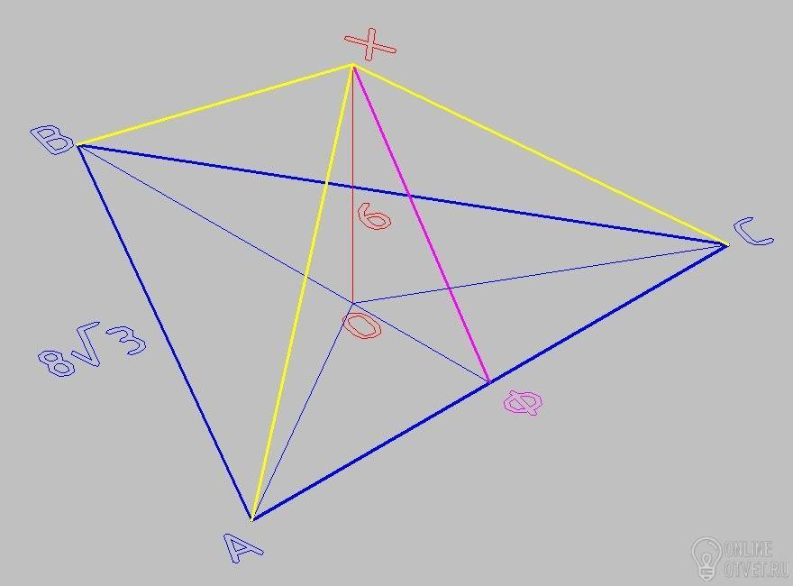 Боковое ребро найдём по т. Пифагора из треугольника ВОХ