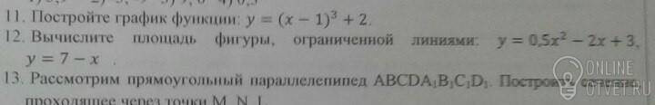 S=интеграл (7-x)-(0,5x²-2x+3))dx=(интеграл)(-0,5x²+x+4)dx