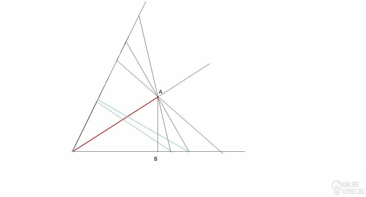 Возьмем угол и проведем в нем биссектрису данной длины. Пусть длина равна l. Теперь будем выбирать точки на луче (назовем его луч 1) данного угла и через конец биссектрисы проводить множество прямых. Они будут пересекаться со вторым лучом угла и будут образовывать угол с ним. Рассмотрим множество получившихся углов. Из каждой вершины угла проведем ее биссектрису до пересечения с лучом 1. Исключим из рассмотрения все биссектрисы длины которых не равны l; Итак, перед нами множество биссектрис с длинами l; Докажем, что любые две могут образовать треугольник. Рассмотрим две крайние биссектрисы. Расстояние между ними