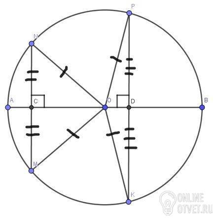 Диаметр AB делит каждую из хорд MN и PK отличных от диаметр, пополам. Докажите что MN параллельно PK(если можно то предоставьте рисунок)
