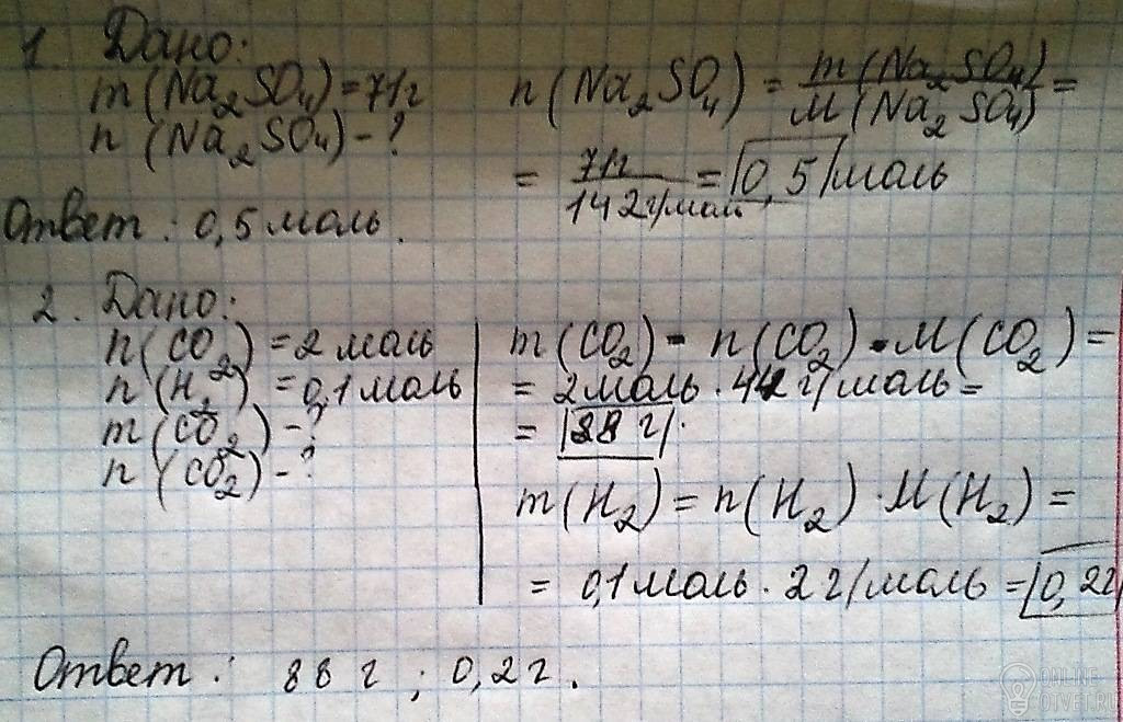 2 определить массу 2 молей CO2 и 0.1 молей H2