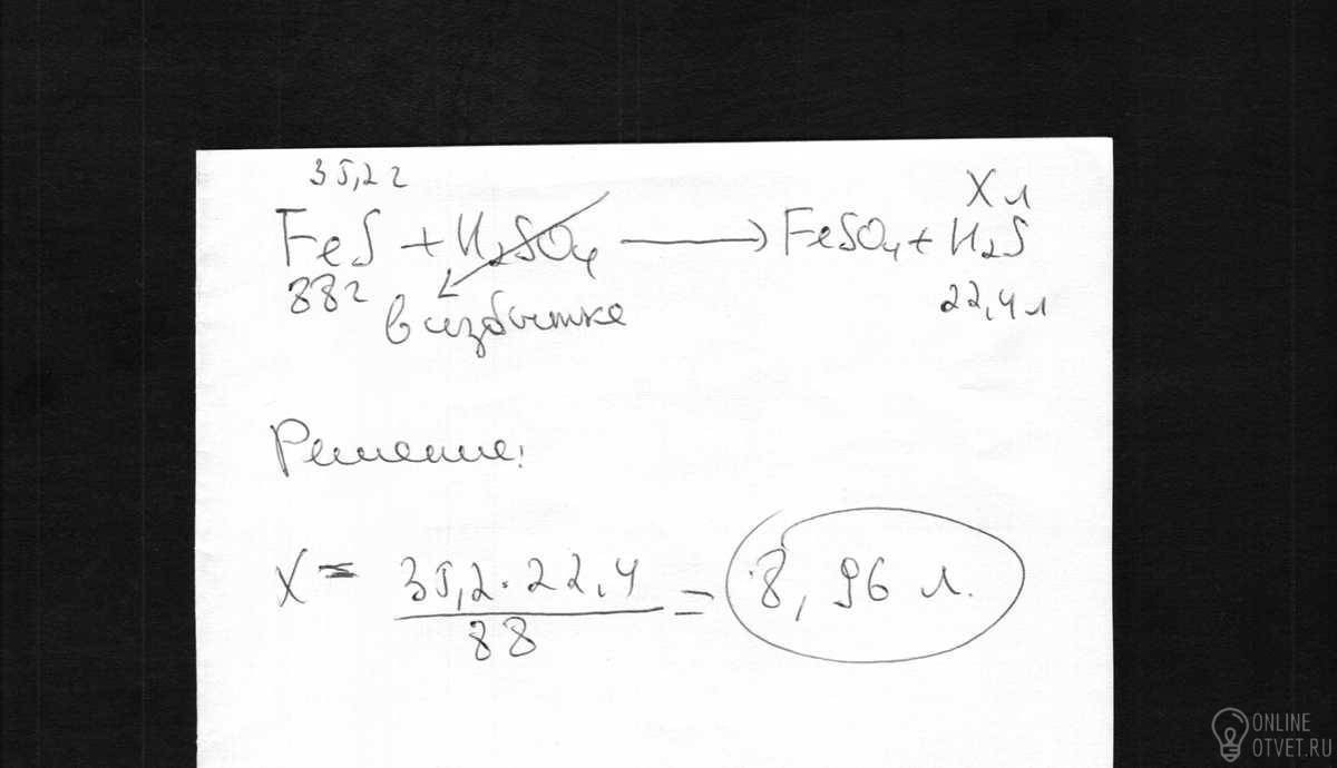 объем сероводорода,который может быть получен при действии избытка серной кислоты на 35,2г сульфида железа (2) равен...(л) при н.у.