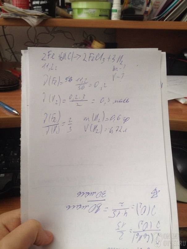 Какая масса водорода и какой объем водорода образуется при взаимодействии 11,2г железа с соляной кислотой?