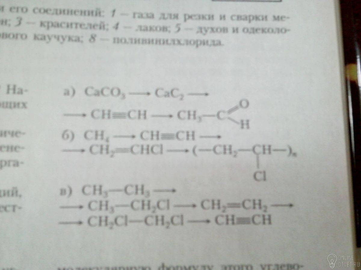 б) 2СН4 --(1500°С или ϟ, 0,01-0,1 с)--> НС≡СН + 3Н2