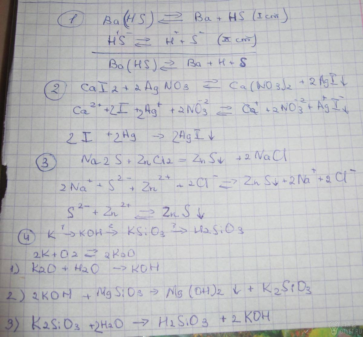 1.Написать диссоциацию гидросульфида бария,гидрокарбоната магния.