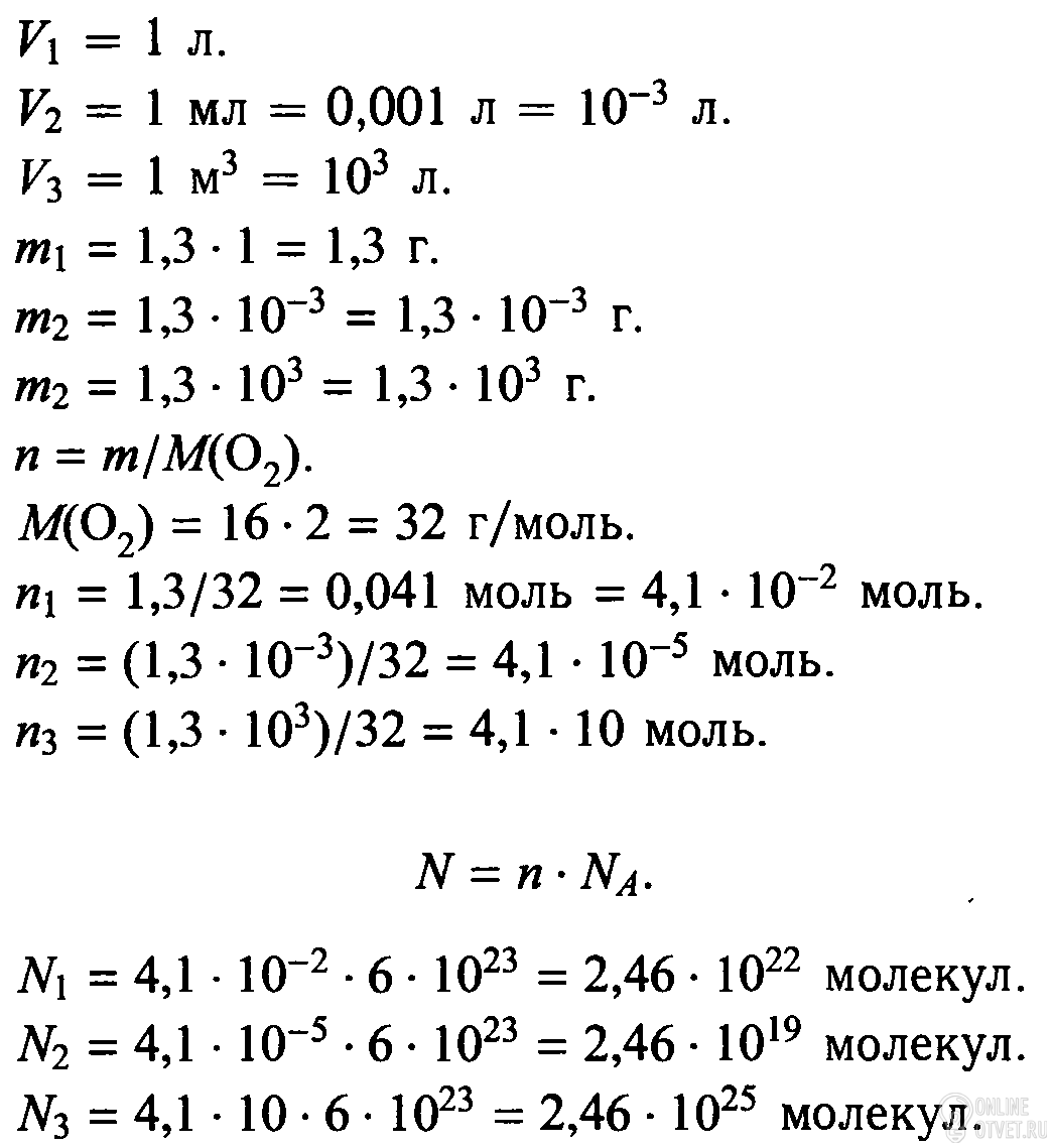 Плотность кислорода равна 1,3 г/л. Вычислите количество вещества кислорода, которое содержится в 1 л его. Сколько молекул кислорода содержится в 1 л: в 1 мл; в 1 м3 ?