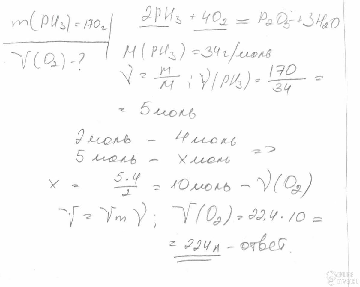 Какой объем кислорода (н. у. ) расходуется при полном сгорании 170 г фосфина ?