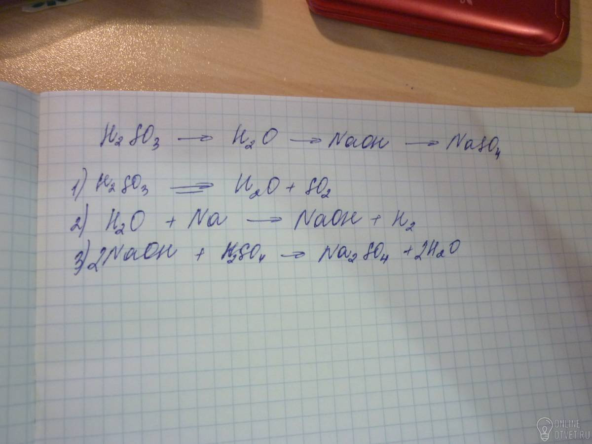 сернистая кислота ---> вода ---> гидроксид натрия ---> сульфит натрия решить