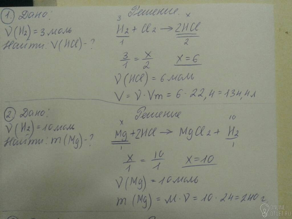 1)найдите объем (н.у.) хлороводорода, который образуется при взаимодейстии 3 моль водорода и хлора.