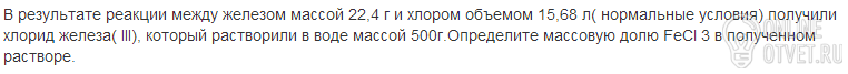 w(FeCl3) = m(FeCl3) / m(розчину) = 65 / 565 = 0,115 (11,5%)