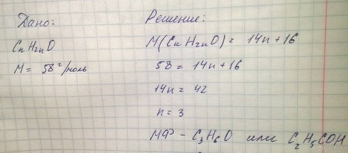 .Визначте молекулярну формулу альдегіду,молярна маса якого дорівнює 58г/моль.