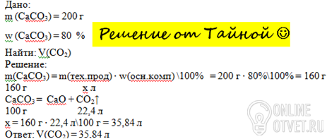 Какой объем оксида углерода (4) выделится при разложении 200г известняка содержащего 80% карбоната кальция