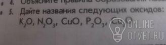 K2O-оксид калия N2O3-оксид азота(III) CuO-оксид меди (II) P2O3-оксид фосфора(III) Cu2O-оксид меди(I)
