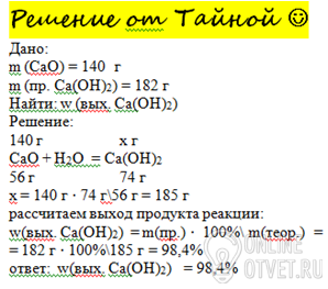 Из 140грамм оксида кальция получили 182 грамма гидроксида кальция.вычислите массовую долю выхода гидроксида кальция.