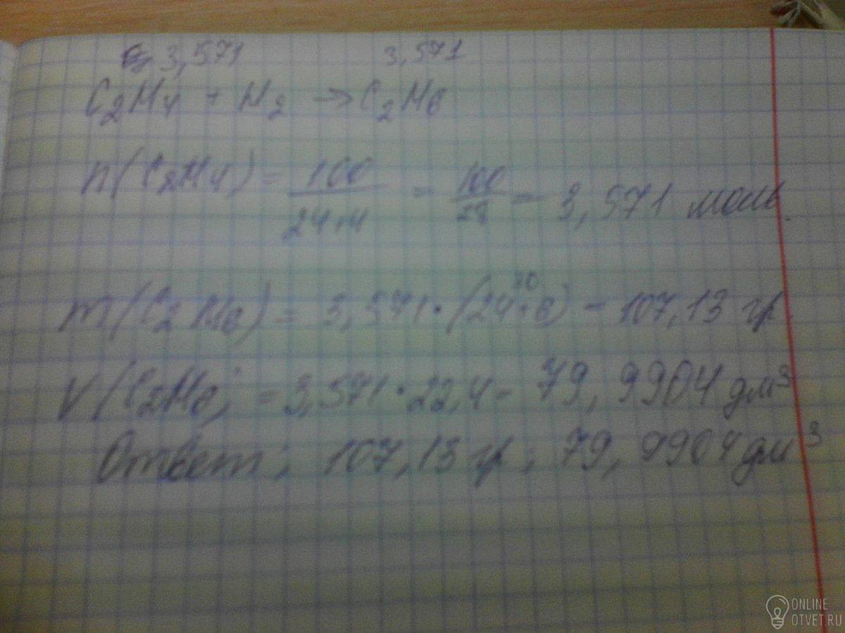 Вычислить массу и объем этана который образуется при гидрировании 100 г. этилена.