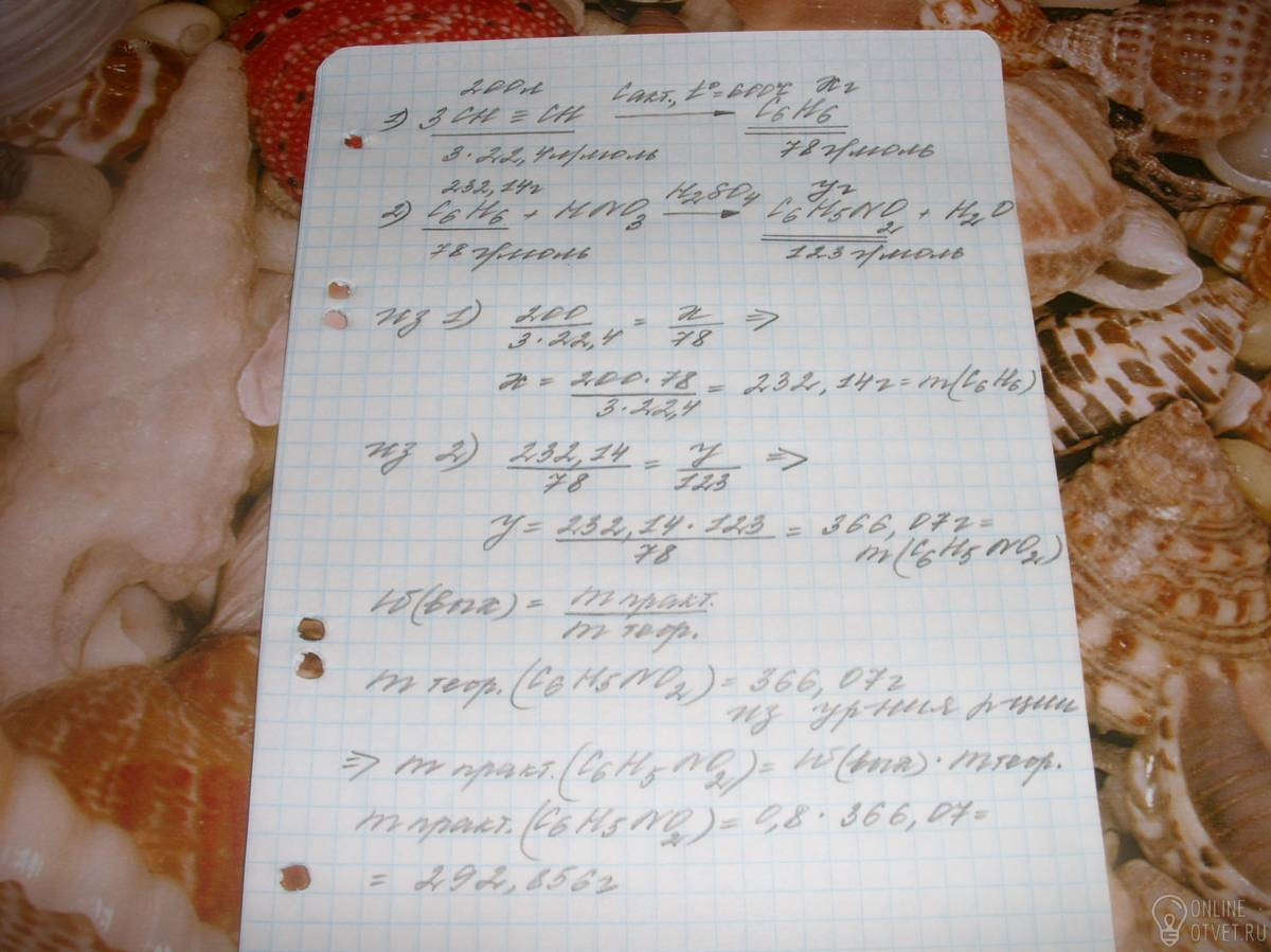 Сколько г нитробензола можно получить из 200 литров этина, если практ. выход 80%?