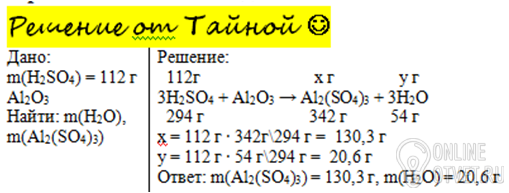 Сколько г соли и воды образуется при взаимодействии 112г серной кислоты с оксидом алюминия