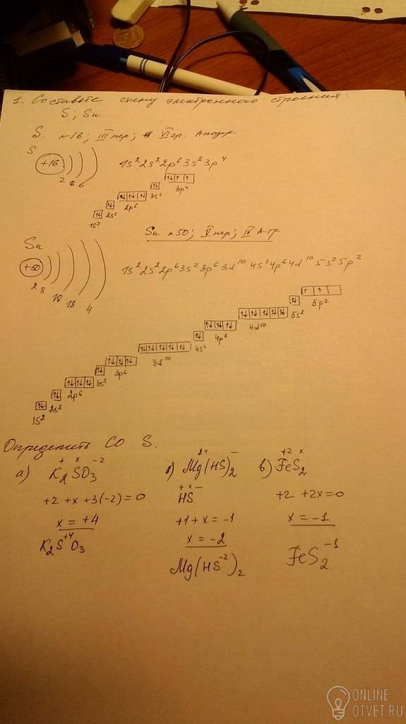 1. Составьте схемы электронного строения, электронные и графические электронные формулы атомов следующих химических элементов: сера, олово.
