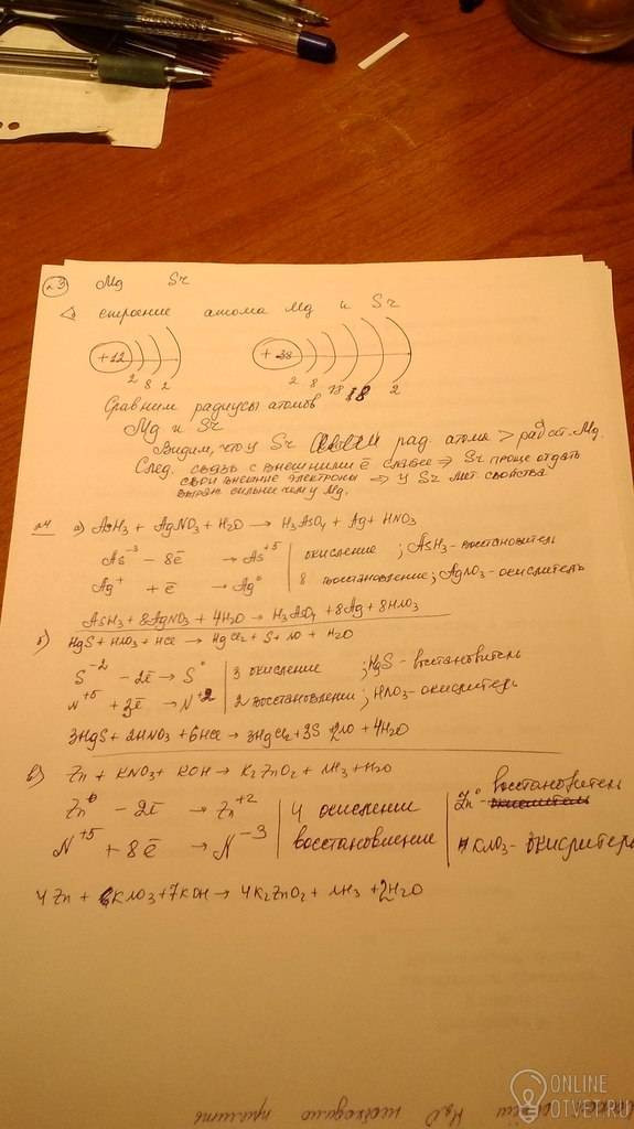 4. В следующих уравнениях реакций определите окислитель и восстановитель, их степень окисления, расставьте коэффициенты методом электронного баланса: а). As H3 + Ag NO3 + H2O = H3AsO4 + Ag + HNO б). Hg S + HNO3 + HCI = Hg CI2 + S + NO + H2O в). Zn + KNO3 + KOH = K2ZnO2 + NH3 + H2O