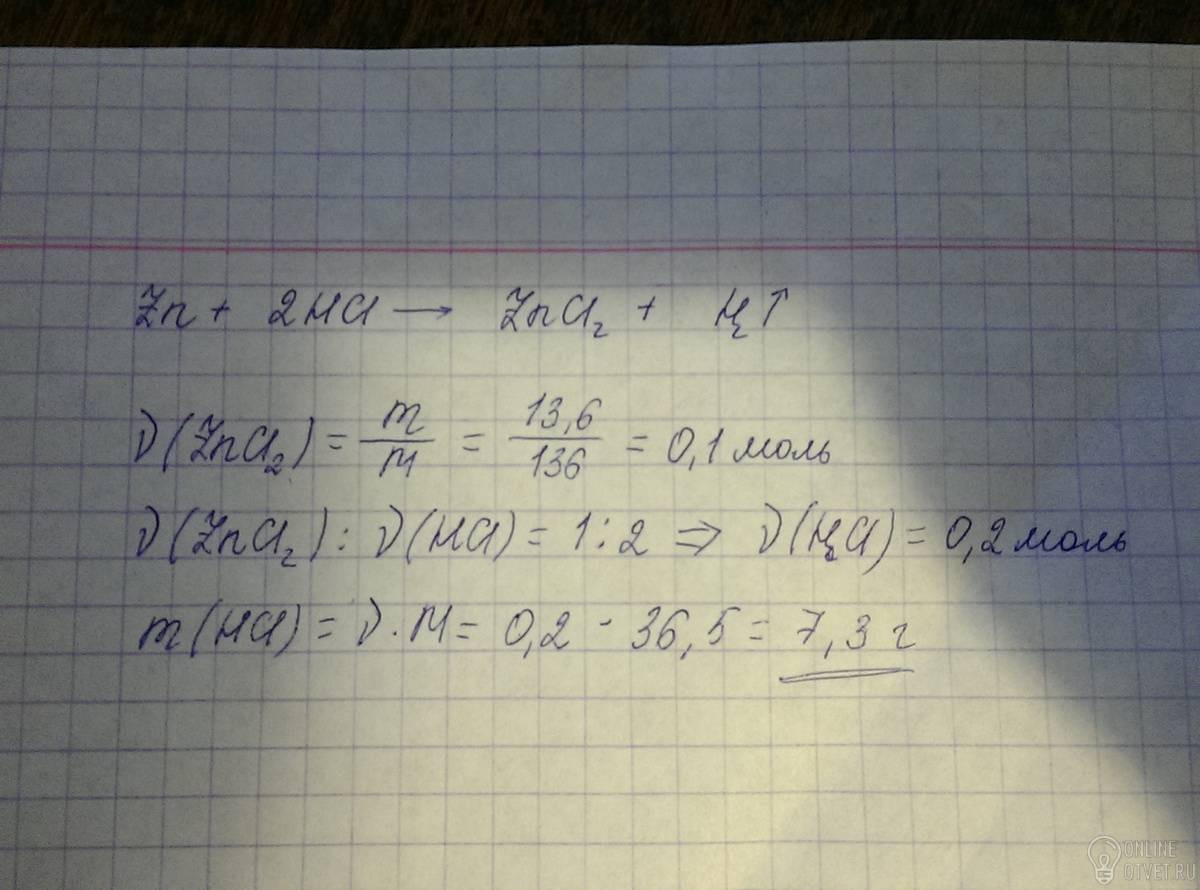 Сколько грам HCl требует для получение 13,6г хлорида Zn?
