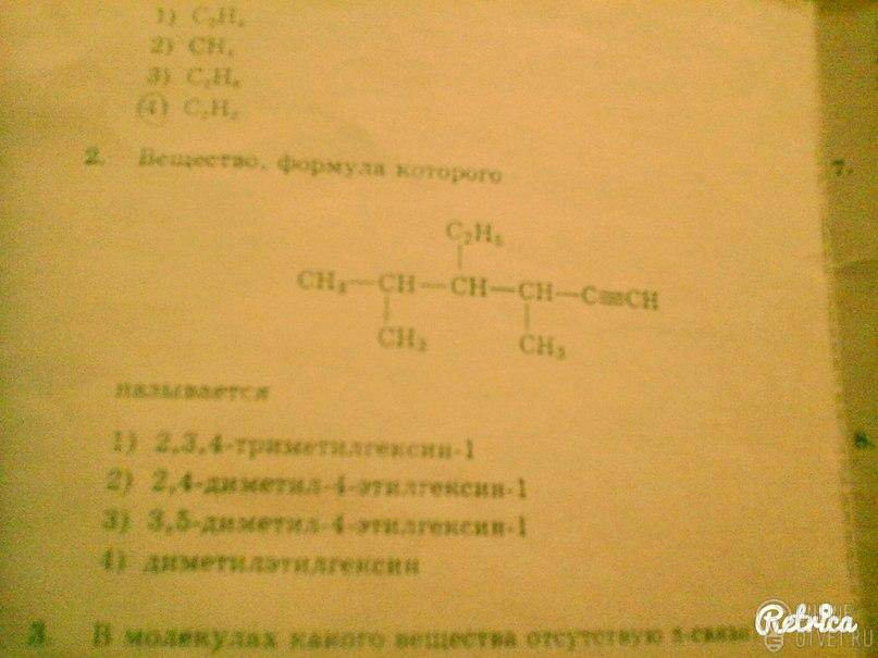 3, 5 диметил 4этилгексин-1. Ответ: 3. Начинаем нумерацию не от того конца к которому ближе расположен заместитель, а от тройной связи.