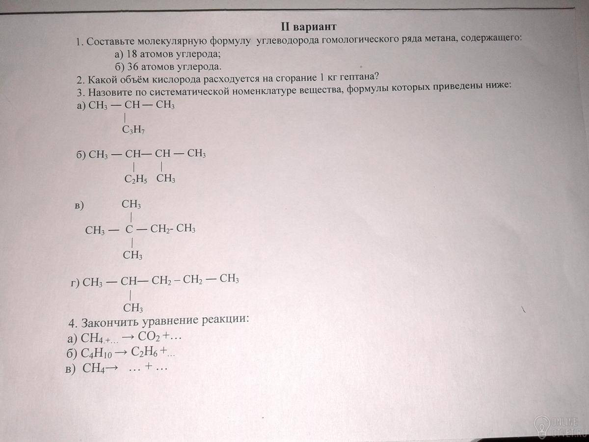 4) СН4 + 2О2 = СО2 + 2Н2О