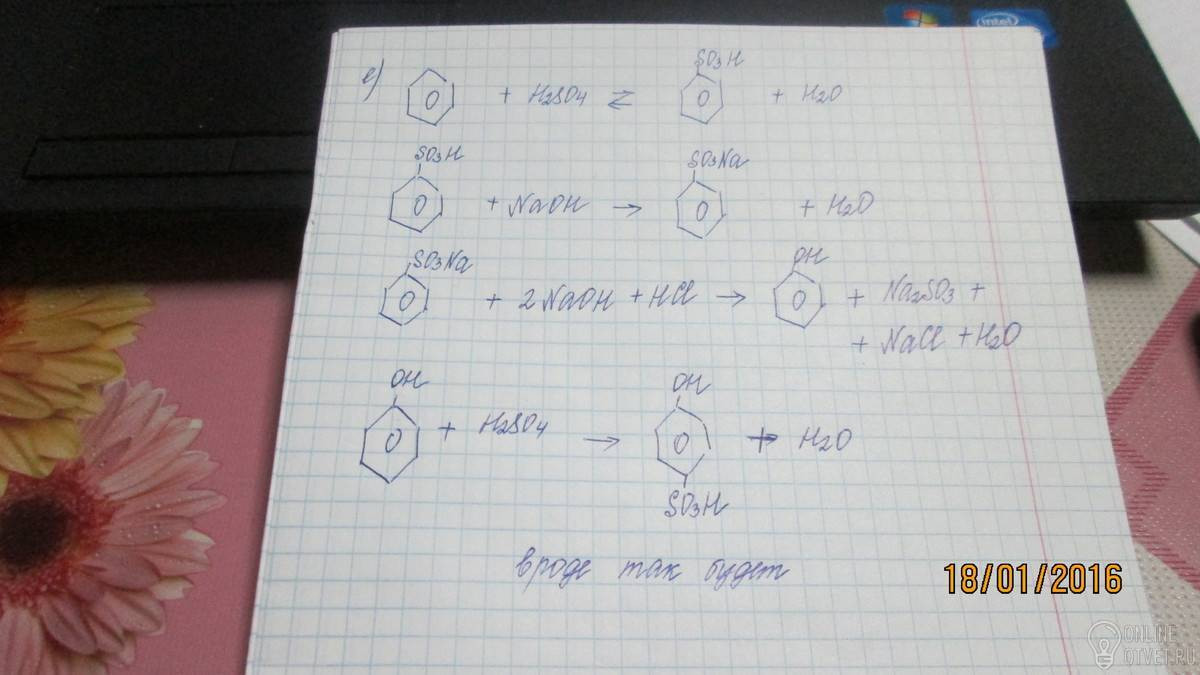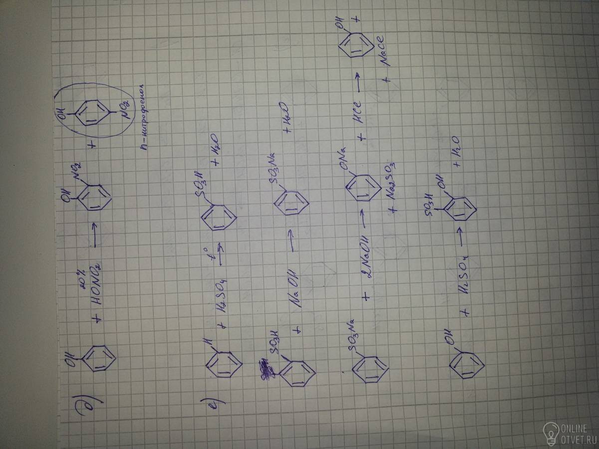 е)бензол - бензолсульфокислота- натриевая соль бензолсульфакислоты - фенол - 4-гидроксибензолсульфокислота
