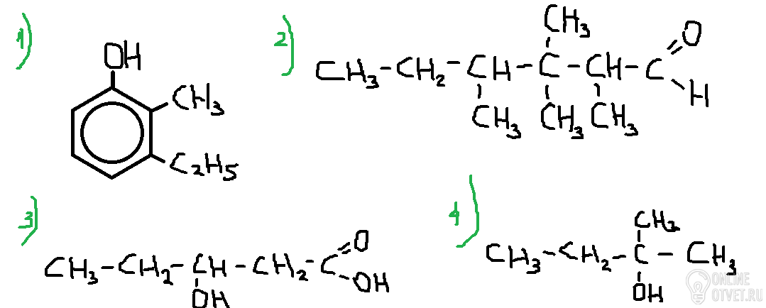 1) составьте структурные формулы веществ: 2-метил-3-этилфенол; 2,3,3,4-тетрабромгексаналь; 3-гидроксопентановая кислота ; 2-метилбутанол-2