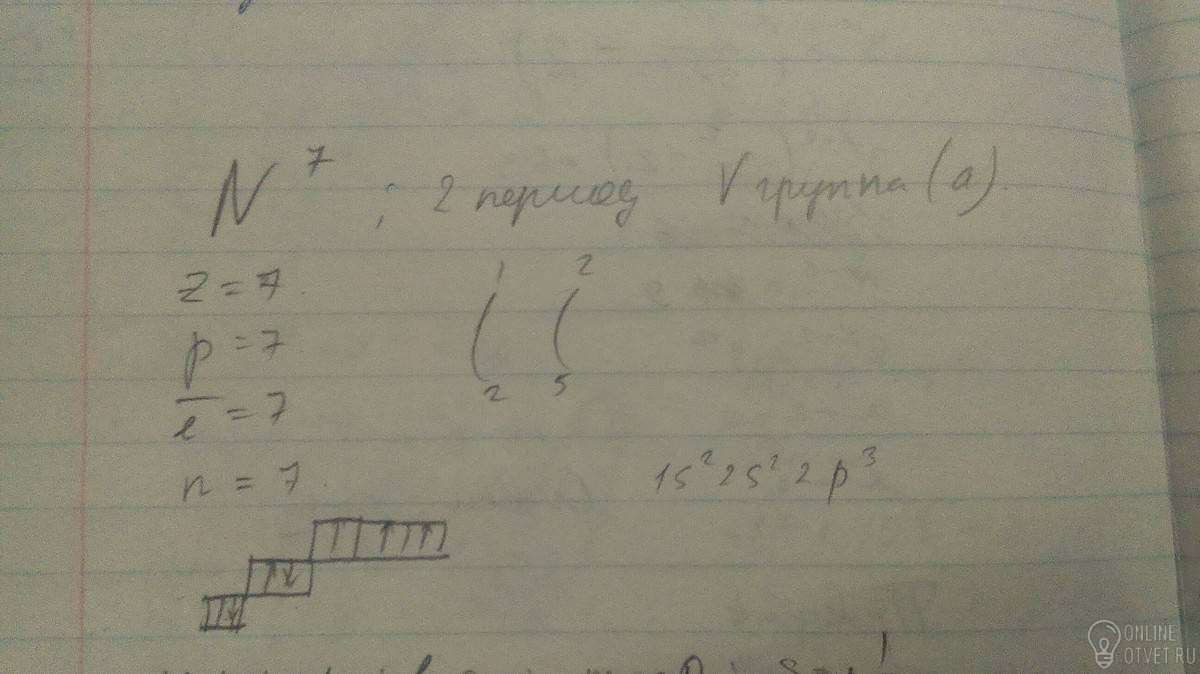 Описать строение атома N (число протонов, электронов, нейтронов, распределение электронов в атоме).