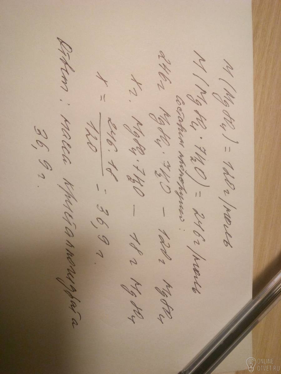 В воде растворили 18 г MgSO4. При пропаривании данного раствора в пробирке осталось MgSO4 * 7H2O кристаллогидрата. определите массу кристаллогидрата.