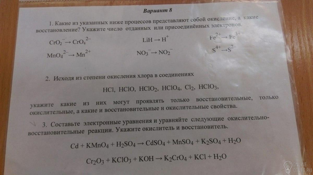 3. 5Cd⁰+2KMn⁺⁷O4+8H2SO4=2Cd²⁺SO4+5Mn⁺²SO4+K2SO4+8H2O