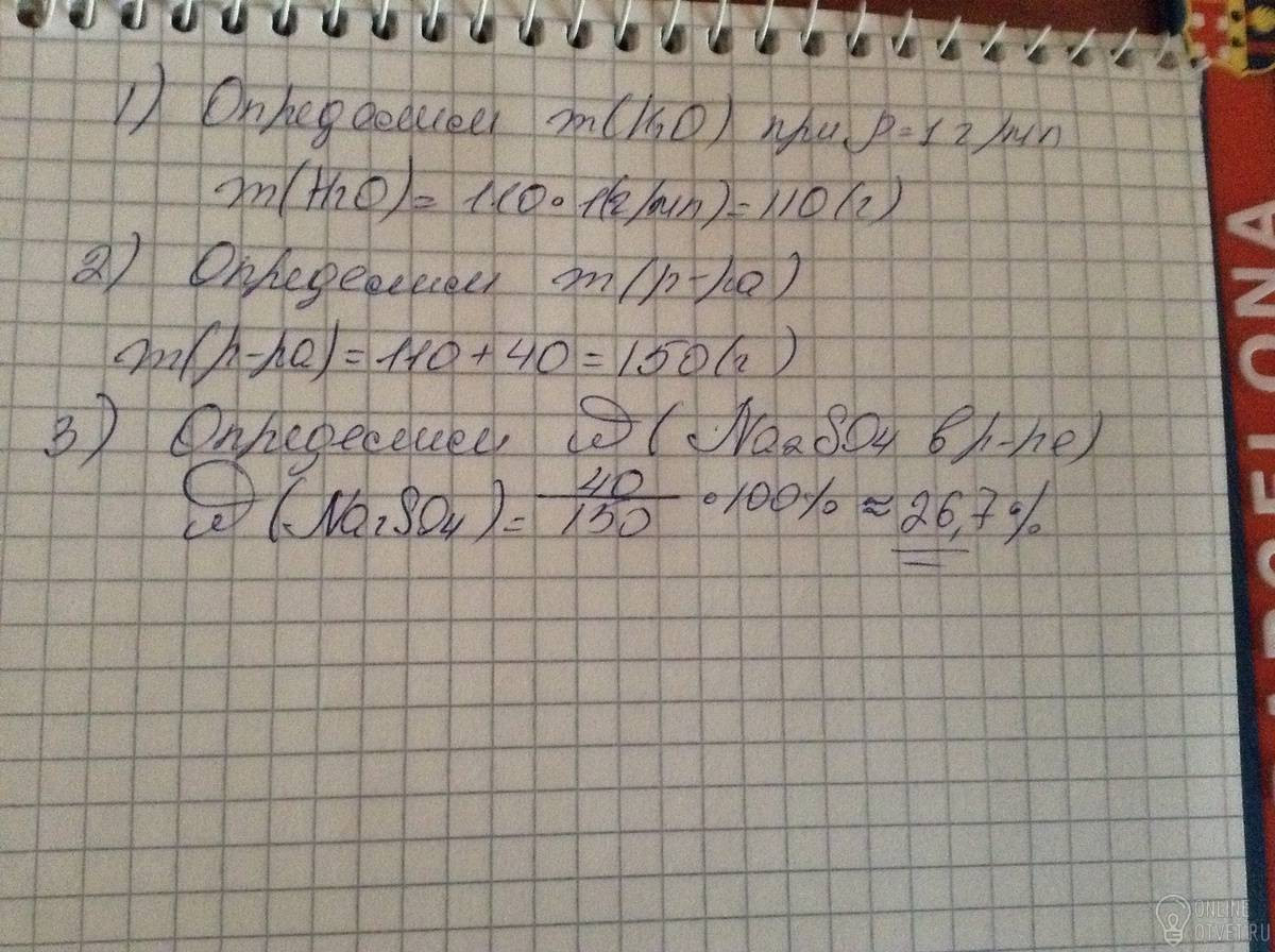 Для приготовления р- ра взяли 110 мл воды и 40 гр сульфата натрия