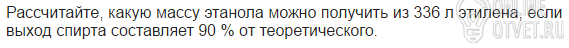 n(C2H4)=336/22.4=15 моль=n(C2H5OH)
