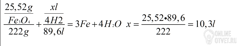Какой объем водорода (н.у.) необходим для получения железа при взаимодействии с 25,52 г железной окалины Fe3O4