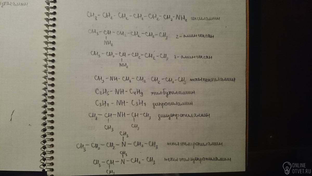 Составьте формулы изомерных аминов, имеющих в молекуле 6 атомов углерода и назовите эти вещества.