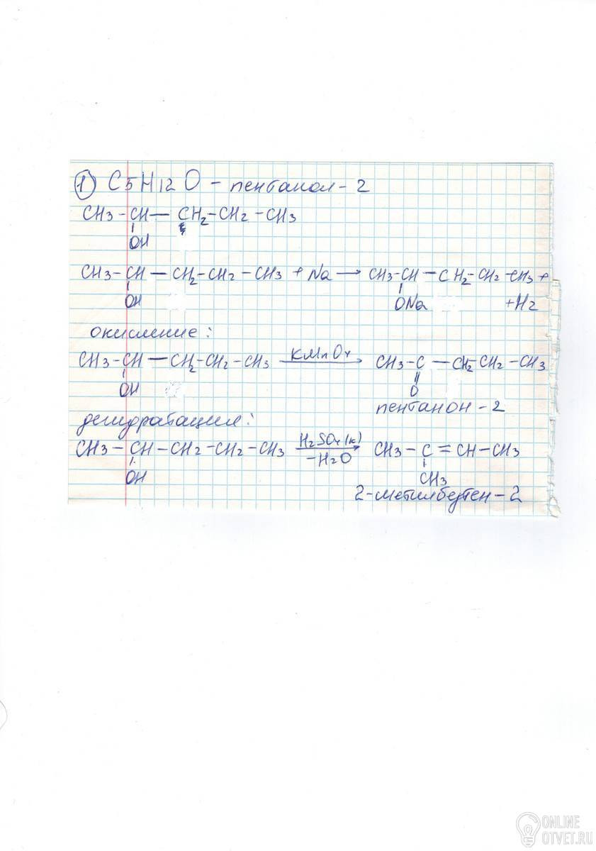 1. Напишите структурную формулу в-ва состава c5h12o,если известно, что оно реагирует с металлическим натрием, с выделением H . Окисление даёт кетон c5h10o и при дегидратации образуется 2-метил-2бутен.