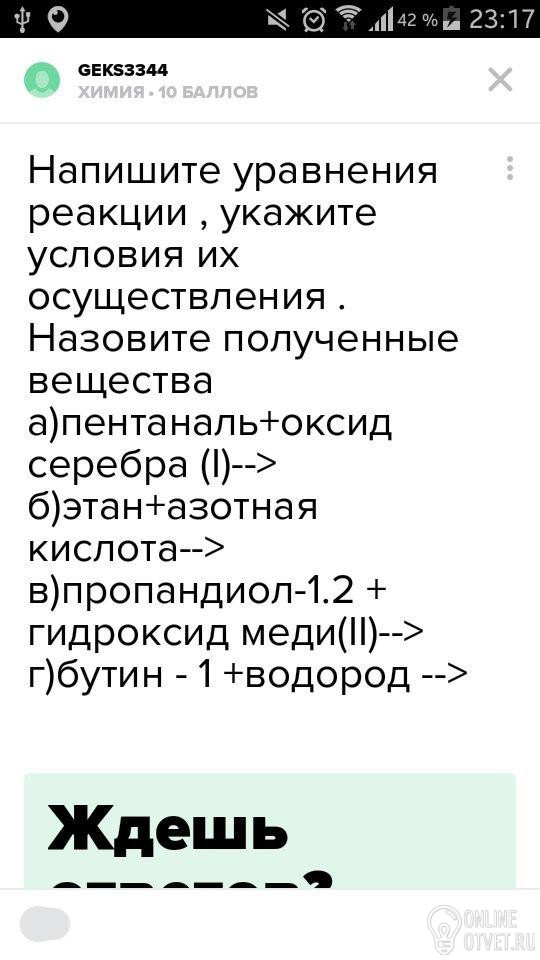 A) C4H9COH+Ag2O=C4H9COOH+Ag Б) C2H6+HNO3=C2H5NO2+H2 В) CH2-CH-CH3+Cu(OH)2=CH2-CH-CH3+H2O | |. | | OH OH. OH OCu