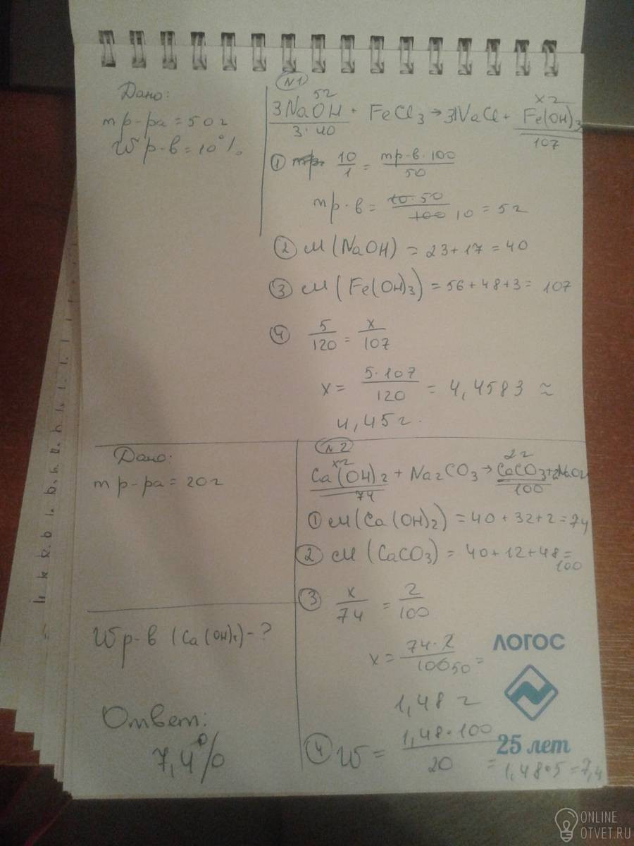 2.Какова массовая доля гидроксида кальция в растворе, если при взаимодействии 20 г раствора гидроксида кальция с карбонатом натрия, было получено 2 г карбоната кальция?