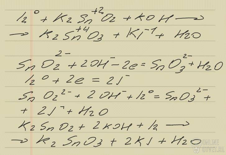 I2 + K2SnO2 + KOH = K2SnO3 + ...