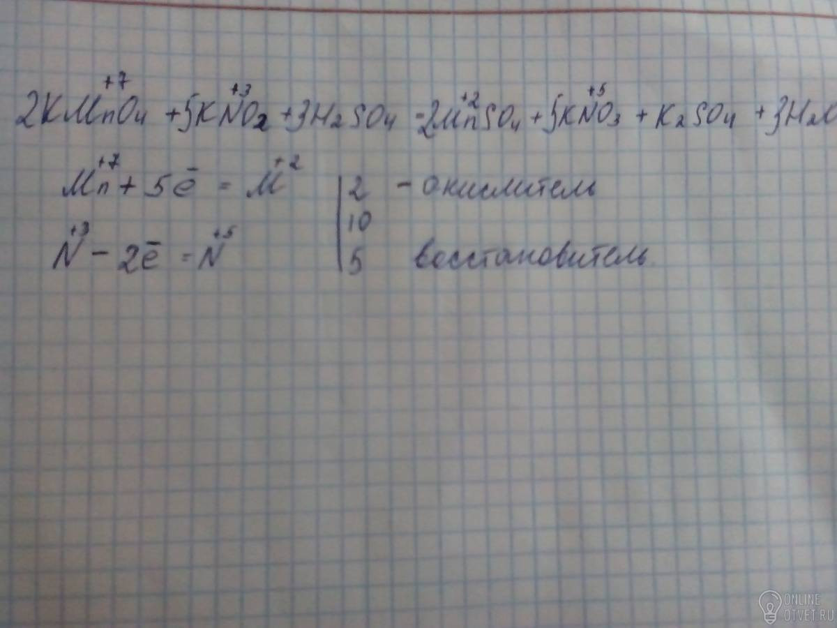 KMnO4 + KNO2 + H2SO4 = MnSO4 + KNO3 + K2SO4 + H2O