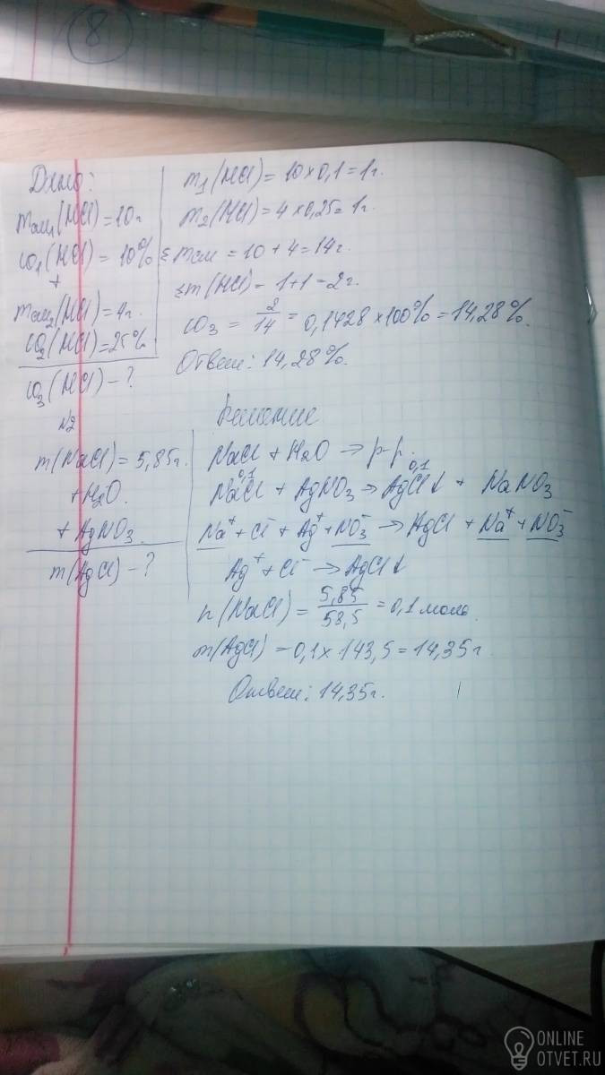 К раствору массой 10 г с массовой долей хлороводорода 10% добавили раствор 4 г с массовой долей хлороводорода 25% . Определите массовую долю HCI в образовавшемся растворе