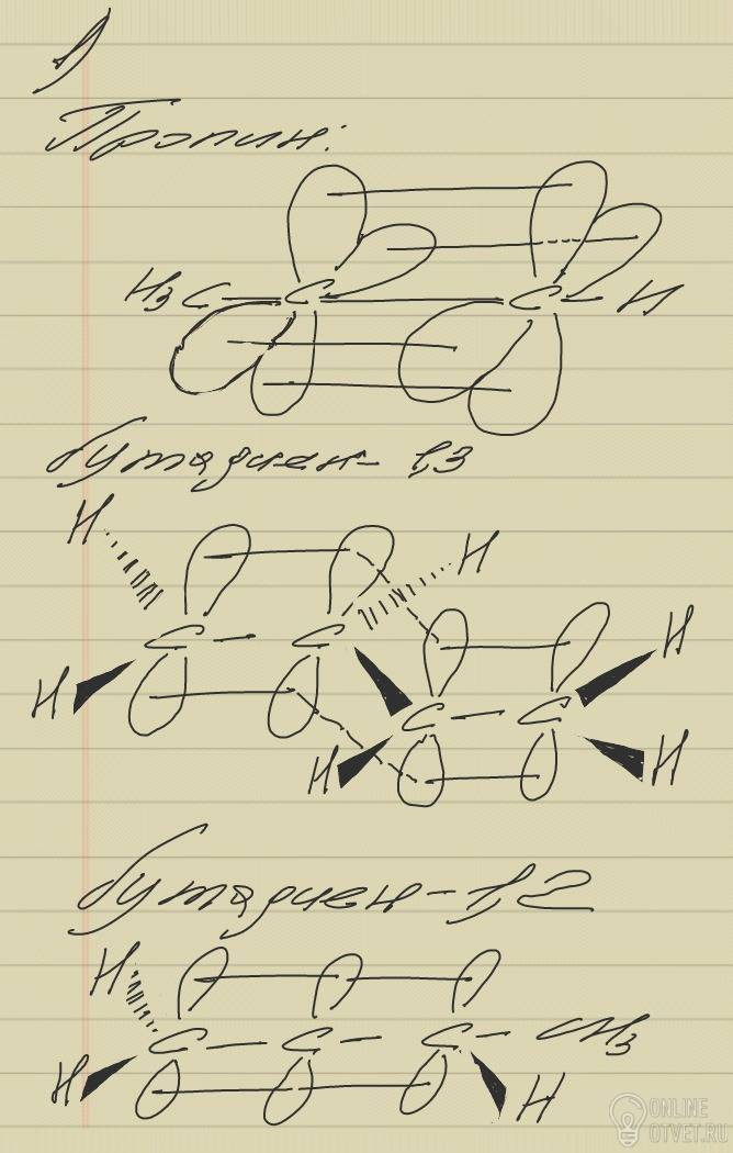 1) нарисовать рисунок гибридизации: пропина,бутадиена-1,3,и бутадиена-1,2.