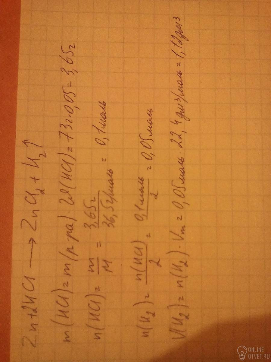 В 73 г соляной кислоты с массовой долей HCI 5% поместили избыток цинка.Вычеслите объем выделевшегося газа(н.у)? Пожааалуууйстааа ребяяяяяят помогитееееее