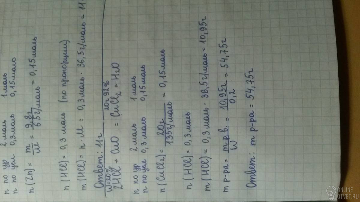 Вычислите массу 20% раствора соляной кислоты необходимого для получения 20 г хлорида меди 2,что составляет 92% от теоретического соляная кислота взаимодействует с оксидом меди 3